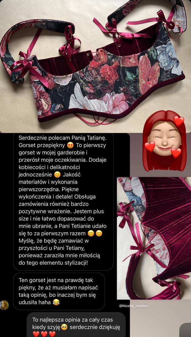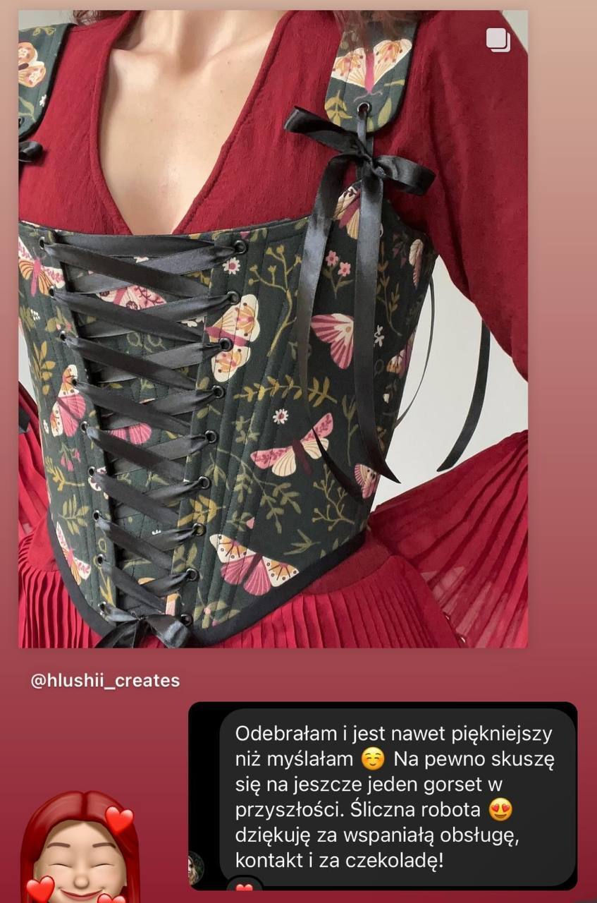 Jestem otwarta na rozmowy ta pytania. Serdecznie będę dziękować za oznaczenia w publikacjach, a za współautorstwo lub możliwość publikacji Waszych zdjęć w gorsecie, podaruję 10% rabatu na kolejny gorset.