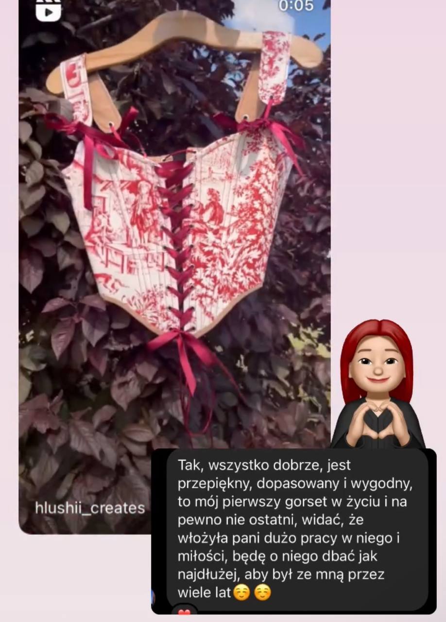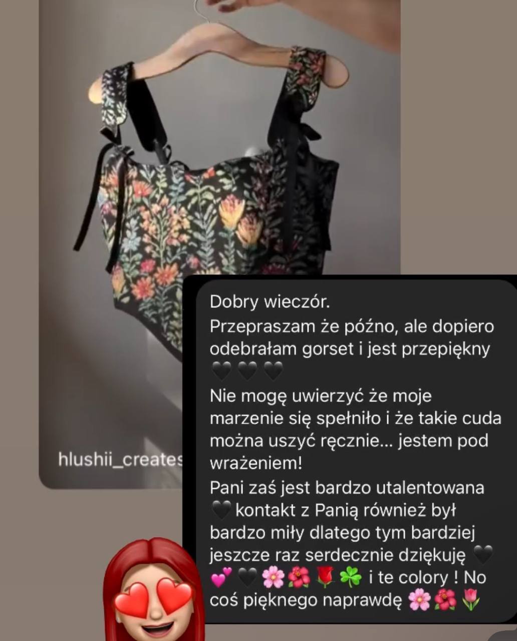 Najpierw otrzymuję od Klientki szczegółowy opis gorsetu, który chciałaby zamówić. Na tej podstawie przygotowuję wycenę.