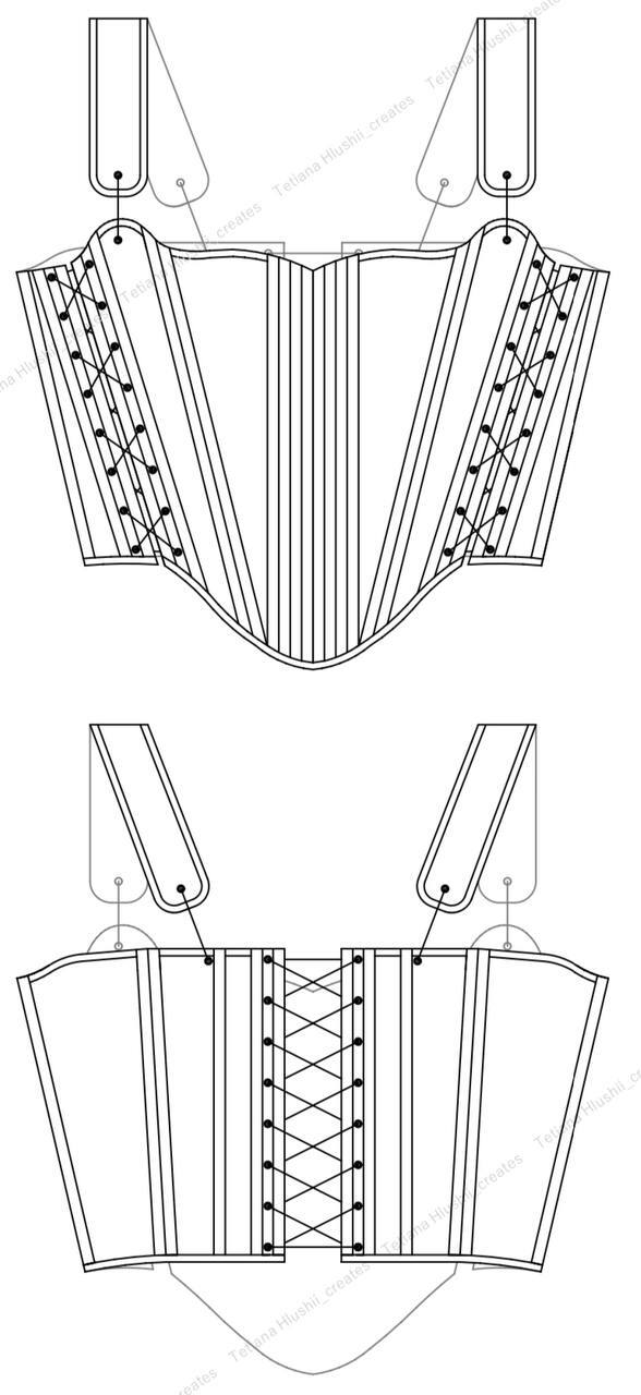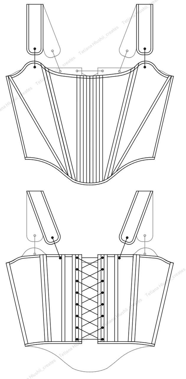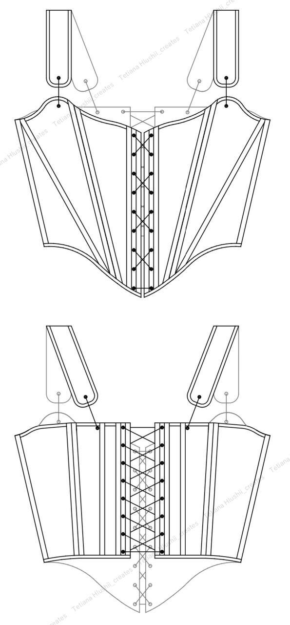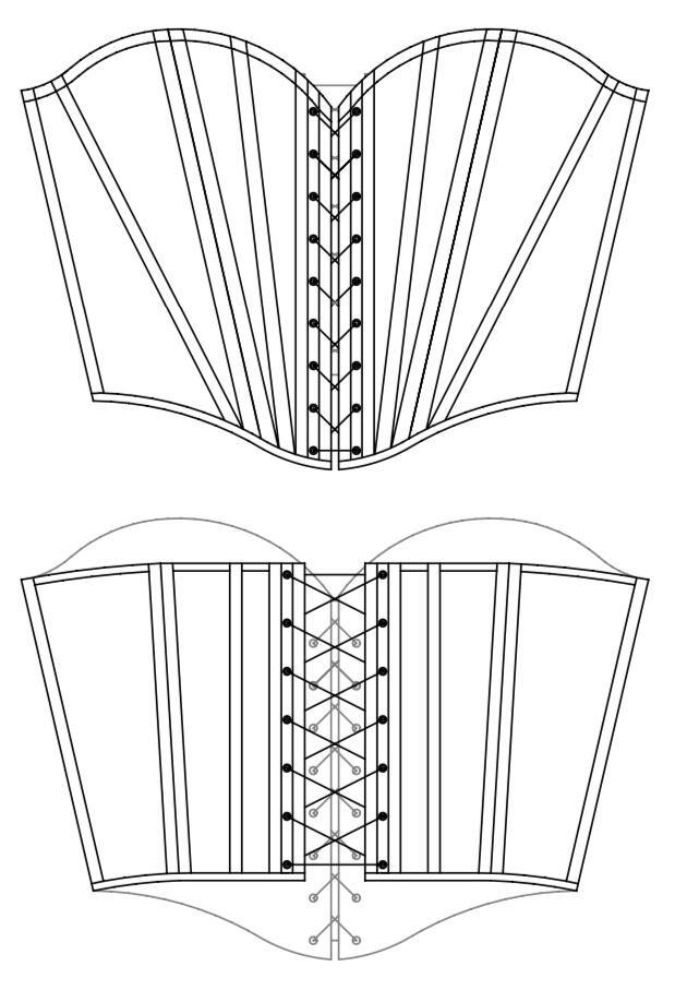 Wewnętrzna strona gorsetu Zewnętrzna strona gorsetu