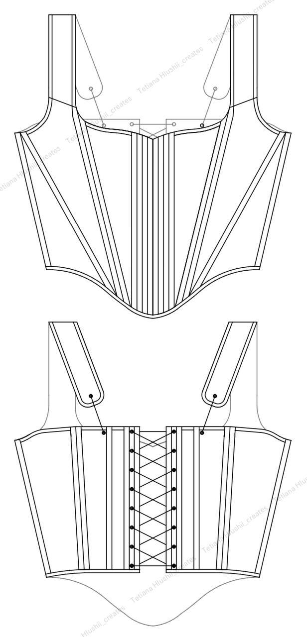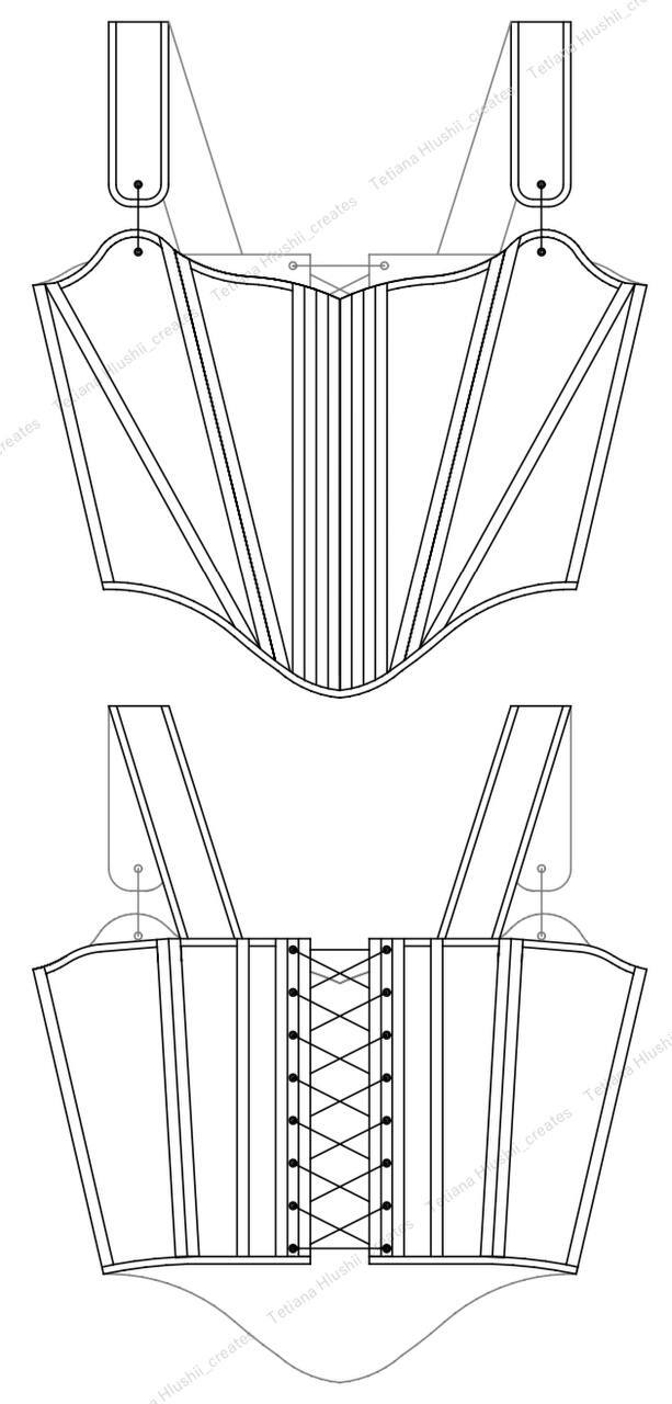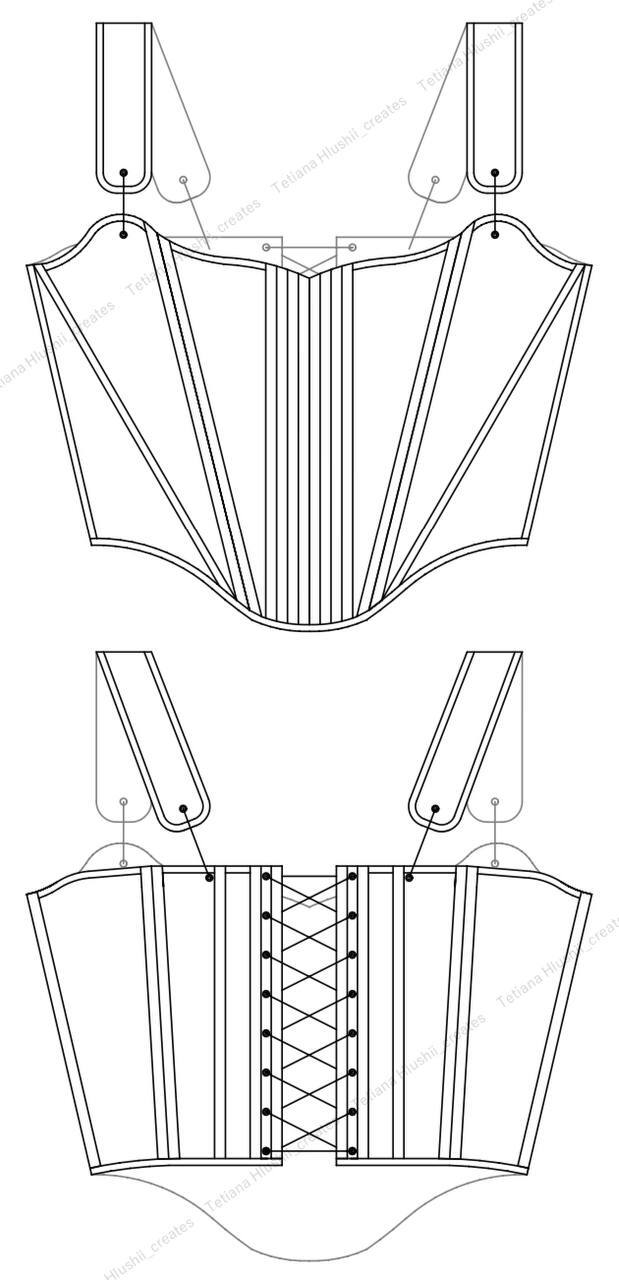 Sznurowanie z tyłu i wszyte ramiączka ze przodu