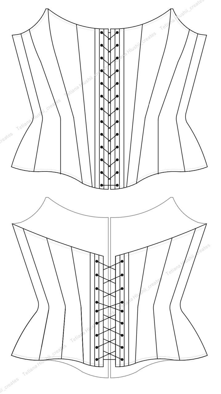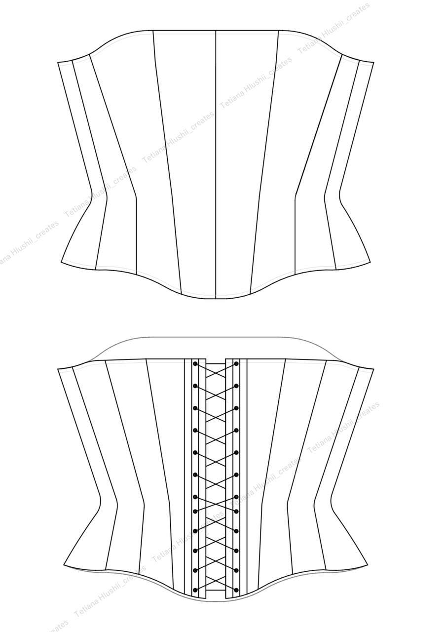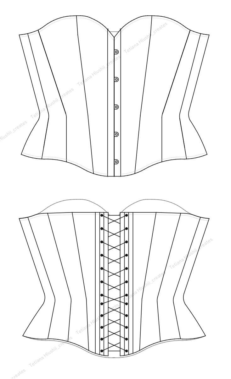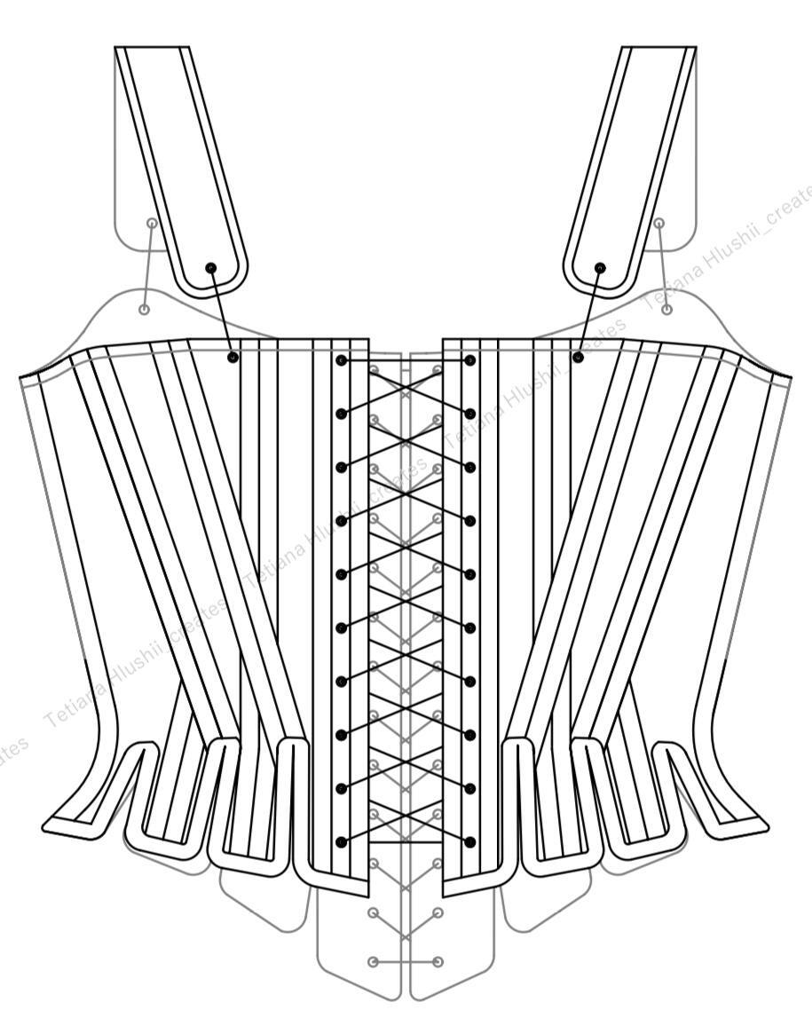 Dwustonny gorset 7 z wszytymi ramiączkami z tyłu. Dwustronny gorset 13 z zdejmowanymi ramiączkami.
