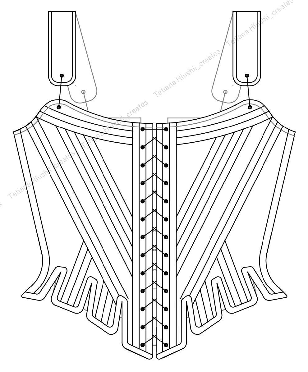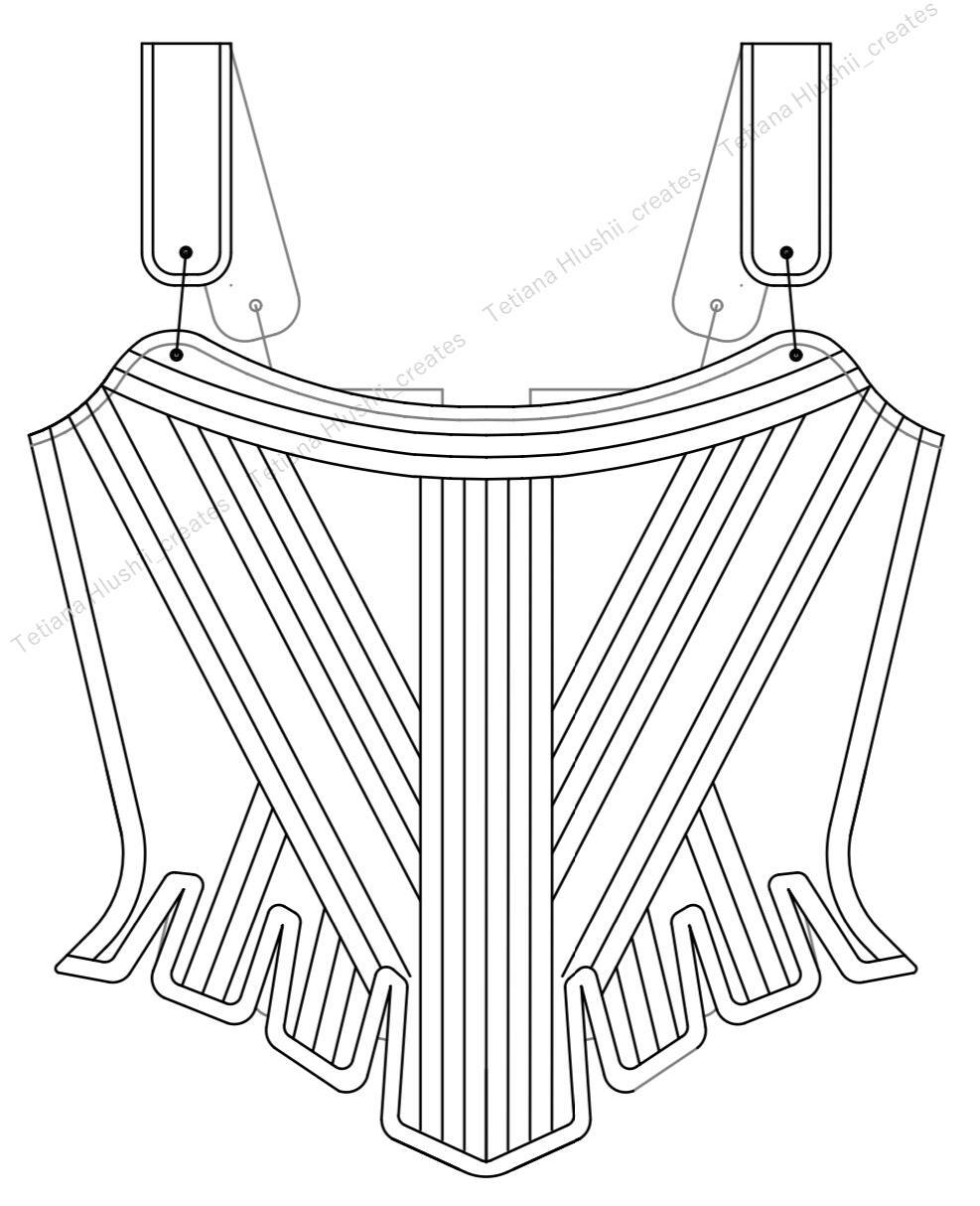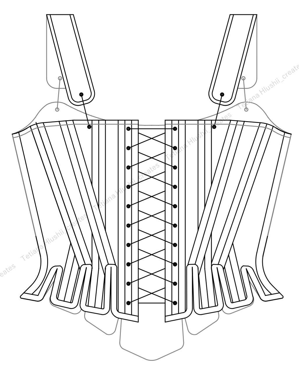 Dwustonny gorset 7 z wszytymi ramiączkami z tyłu. Dwustronny gorset 13 z zdejmowanymi ramiączkami.
